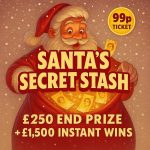 Get your ticket for Santa’s Secret Stash and you could bag a £250 end prize plus a share of £1,500 in instant wins, including a top instant prize of £250 cash!