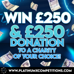 This is the comp where winning feels even better! Grab a share of the £500 end prize — that’s £250 for you and £250 donated to a charity of your choice.